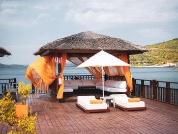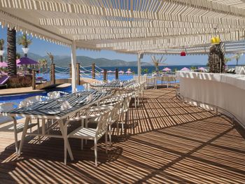 Еда не достойна отеля 5 звёзд, однообразная, нет большого выбора. Персонал не говорит хорошо на английском и русском, приветлив и готов решать вопросы только, если ты гражданин Турции либо говоришь на турецком. Складывалось впечатление, что было бы лучше, если бы иностранные туристы к ним не ехали. На нашу террасу регулярно приходили отдыхать посторонние гости и оставляли у нас свой мусор, пока нас не было в номере. У меня был оплачено раннее заселение по тарифу моего номера, однако нас заселили в первый день в номер самой низкой категории, и пока я не настояла на смене и предоставлении номера проплаченной категории, нас заставляли ждать неопределённое время.