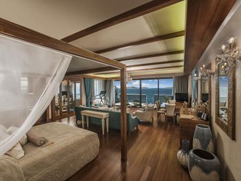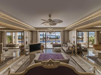 Первоначально испытали шок от количества золота и хрусталя. Внешний вид отеля помпезный. Но через несколько дней настолько привыкли, что начали замечать все новые детали. Очень наполненный интерьер. Самое большое впечатление произвели сотрудники, готовые помочь и порадовать гостей всегда и везде. Лучшее и частое слово, которое мы слышали: "Конечно". Любой наш вопрос решался. Спасибо за приятное отношение. Современно, удобно и оперативно - чат с ассистентами. Также нужно отметить организацию и качество питания и напитков - все на высшем уровне и почти круглосуточно. Постельное белье, одеяла и подушки хорошего качества. Радовала кофемашина в номере. Очень много разных мест, где можно проводить время в расслабленном состоянии: пляжи, пантоны, бассейны (открытый и закрытый), сауна, бары, лобби, рестораны. Нигде нет очередей, толп людей, шумной анимации (возможно, это так в октябре). Бодрум - чудесный город для прогулок. Это "другая" Турция. Очень понравилось.