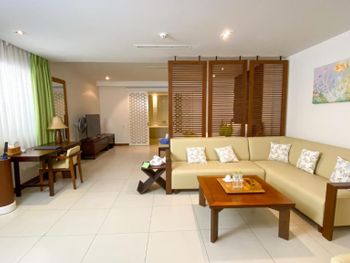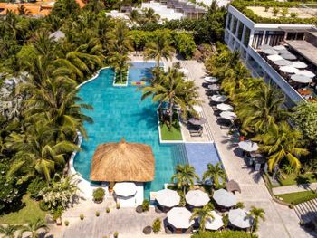 Невероятно красивая территория отеля. Много цветущих деревьев, все утопает в зелени. На территории отеля живут красивые птицы и по пальмам прыгают белки. Очень добрый, дружелюбный персонал. Постоянно спрашивают как дела и все ли хорошо? Есть также бесплатный полдник. Вечером угощают шоколадками. На территории отеля есть ресторан с видом на море. В ресторане большое и разнообразное меню. Отдельную благодарность хотим выразить сотруднику Хын за заботу и внимание, а также решение многих вопросов. Отдыхая в данном отели получили полную перезагрузку, релакс и умиротворение.