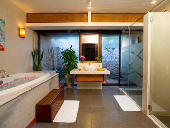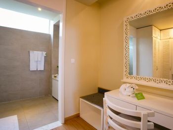 Территория шикарная, ухоженная. Вода в бассейне отличной температуры. Номер класс! Санузлы с хорошей сантехникой, хорошая косметика. Свет отличный, разеток достаточно. В номере везде живые цветы в горшках и картины - это добавляет уюта. Всё свежее, подушки удобные.