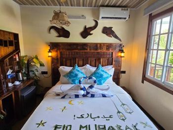 Все понравилось. Всего 4 номера (мы были в начале марта 2025 года). Еще 2 номера доделывают. Очень уютно и красиво. При этом есть своя территория с садом и рестораном под навесом. Есть уличный душ для того, чтобы смыть песок с ног и оборудования. Ласты и маски - бесплатно. В номере: чайник, холодильник, фен, зубочистки, чай, кофе, посуда для чая. Мы просили нож и доску - дали без проблем. Каждый номер имеет свой дизайн, в интерьере много дерева и все сделано своими руками. Хозяин Aiman и его жена Shai очень много внимания уделяют деталям. Были на экскурсии на скатов (мант), но это природа и по дороге «туда» их не было и тогда Shai подарила нам экскурсию на розовый коралловый сад (загуглите, это настоящее сокровище Мальдив) и еще кормление рыб с рук, потом еще и дельфинов встретили))) восторг! Я плакала от счастья) от эмоций) от красоты вокруг). Еда это тоже понравилась, все пожелания учитывают. Хозяева Corbin Guesthouse это прекрасные менеджеры и просто хорошие люди, рекомендую 100%
