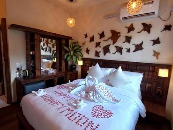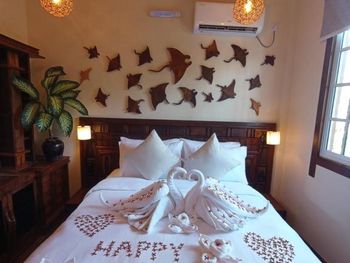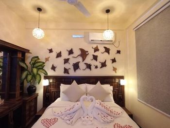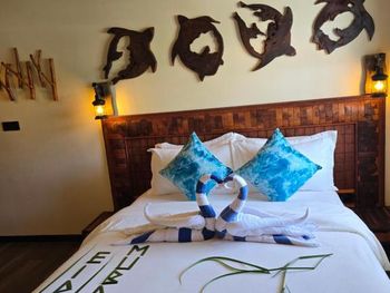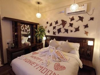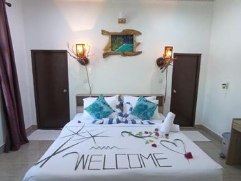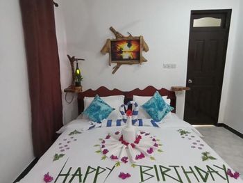 Все понравилось. Всего 4 номера (мы были в начале марта 2025 года). Еще 2 номера доделывают. Очень уютно и красиво. При этом есть своя территория с садом и рестораном под навесом. Есть уличный душ для того, чтобы смыть песок с ног и оборудования. Ласты и маски - бесплатно. В номере: чайник, холодильник, фен, зубочистки, чай, кофе, посуда для чая. Мы просили нож и доску - дали без проблем. Каждый номер имеет свой дизайн, в интерьере много дерева и все сделано своими руками. Хозяин Aiman и его жена Shai очень много внимания уделяют деталям. Были на экскурсии на скатов (мант), но это природа и по дороге «туда» их не было и тогда Shai подарила нам экскурсию на розовый коралловый сад (загуглите, это настоящее сокровище Мальдив) и еще кормление рыб с рук, потом еще и дельфинов встретили))) восторг! Я плакала от счастья) от эмоций) от красоты вокруг).