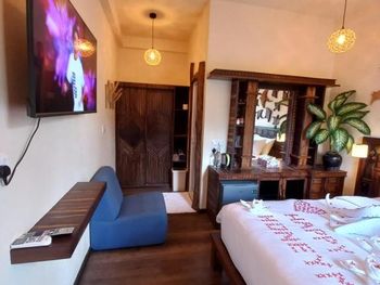Комнаты отлично декорированы. Номера чистые, ухоженные. Горячая вода, электричество работают без перебоев. В комнате также есть чайник, вода,