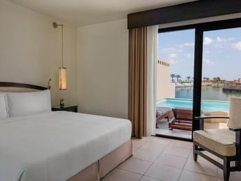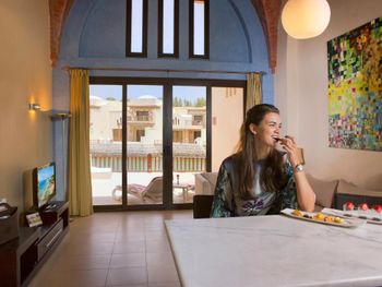 Все номера оформлены в современном арабском стиле. К услугам постояльцев гостиная зона и телевизор с плоским экраном и спутниковыми каналами. В некоторых номерах обустроены собственный балкон или терраса. Из окон роскошных гостевых вилл открывается вид на сад или лагуну. Гости некоторых вилл могут пользоваться собственным бассейном.