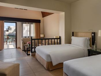 много ограничений, например: нельзя брать алкогольные напитки в номер, нельзя посещать некоторые места отеля, которые доступны только людям с доп. пакетом (некоторые пляжи, рестораны). РЕДКО БЫЛА ГОРЯЧАЯ ВОДА В НОМЕРЕ !!!!! Персонал на ресепшене не клиентоориентирован. Поселили в самый дальний корпус, а за переселение поближе требовали доплатить. Удивительно, но музыки в отеле нигде нет. Только во время коротких вечерних представлений.