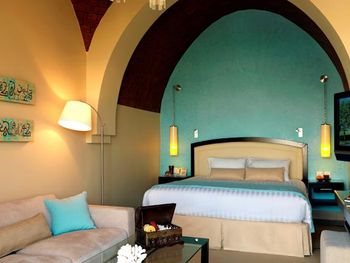 Все номера оформлены в современном арабском стиле. К услугам постояльцев гостиная зона и телевизор с плоским экраном и спутниковыми каналами. В некоторых номерах обустроены собственный балкон или терраса. Из окон роскошных гостевых вилл открывается вид на сад или лагуну. Гости некоторых вилл могут пользоваться собственным бассейном.