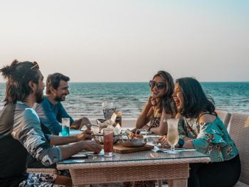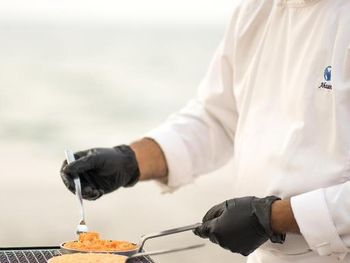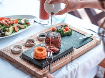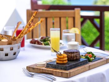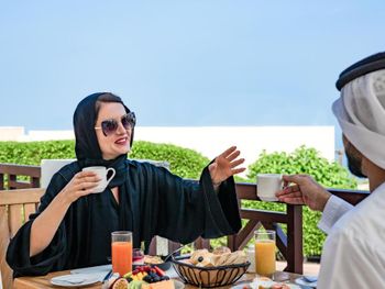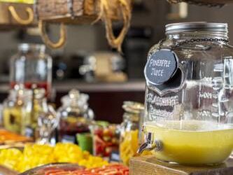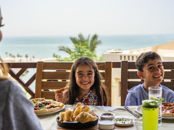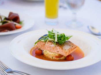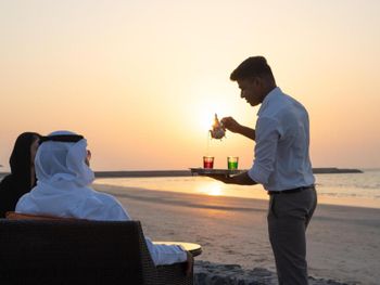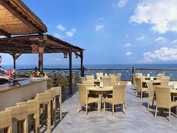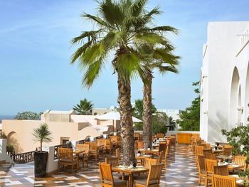 В ресторанах курортного отеля Cove Rotana Resort - Ras Al Khaimah сервируют «шведский стол», в меню которого входят блюда интернациональной кухни, а также восточные и средиземноморские деликатесы. На пляже и в баре у бассейна подают напитки и легкие закуски.