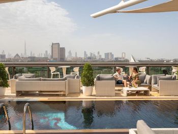 Отель на 5+ звёзд,Бассейн на крыше с видом на Бурдж Халифа,рядом метро,рядом много рестороранов супермаркетов.Очень удобное расположение, бесплатный трансфер на пляж Кайт бичь,Дубай мол или до станции метро.🔥👍