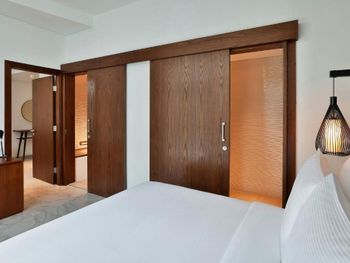 Выдвигающиеся двери в ванную комнату очень опасны, можно остаться без пальцев,так как нет ограничителей, пешком выйти некуда, кофе невкусный, как и в большинстве мест ОАЭ.