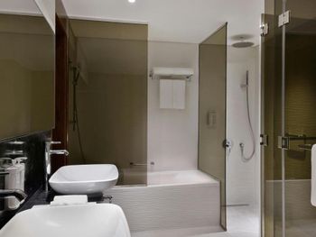 Персонал отзывчивый, всё новое и приятное,размер ванной комнаты отличный, в День Рождения сделали приятный сюрприз в номере и на завтраке принесли торт со свечой (по нашей просьбе конечно же), шведский стол разнообразный.