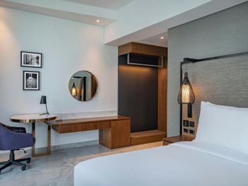 Отель открылся в ноябре 2023 года, все новое. Приятный интерьер, есть своя пекарня, расположение отеля очень удачное. Персонал приветливый. По приезду номер был еще не готов, поэтому в качестве извинения мне повысили категорию номера и угостили кофе, пока часик посидела подождала. Обед в формате шведского стола, стоимость всего 76 дирхам на человека, очень демократично. Выбор еды не сильно большой, но для 4* очень неплохо.