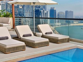 Если у вас особенный день можете заранее написать в отель о ваших желаниях,мы брали полупансион завтрак + можно было выбрать либо ланч либо ужин,был один случай когда мы были за городом я на всякий случай просто сказала сотрудникам и они сказали что сегодня или в другой день мы можем и пообедать и по ужинать было очень приятно,есть пляж он классный там внутри и бассейн тоже есть только он вот закрылся мы успели всего 1 день там побыть пляж снова открыт с 9 августа,завтрак очень хороший каждый день меняется а ужин вообще классный тоже каждый раз обновляется,еще вы берете полупансион на ресепшене вам дают как бы ваучер и вы можете поужинать в 20 ресторанах разного района например мы ужинали в ресторанах где бизнес Бэй недалеко от отеля и еще в Дубай Марине на ужин так же можно выбрать либо меню салат ужин и десерт либо буфет как шведский стол мы чередовали каждый раз все было очень вкусно в отеле также есть свой бассейн не большой но очень красивый с видом на Бурдж кхалифу есть утюг в номере сам отель очень классный красивый с интересным интерьером вообщем все было отлично классно отдохнули и провели время очень рекомендую этот отель если в Дубай теперь только сюда а еще если попросить или уведомить на ресепшен о раннем выезде вам могут принести завтрак в номер или дать вам с собой взять