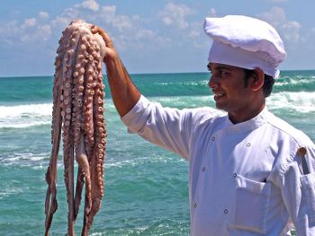 Вечером ели в ресторане. Еда очень вкусная. Не особенно дорого (блюдо около 10-15 долларов). Вино от 20 долларов. Заказали морских вкусностей (140 долларов), очень вкусно, но порция не на двух человек, а на всех четверых, много не доели - обидно...