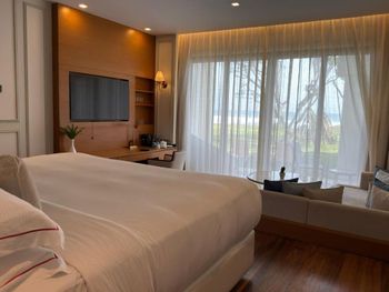Стильно выполнен номер Была в номере ванная Из постели видно океан Подарили вкусный тортик на день рождение.