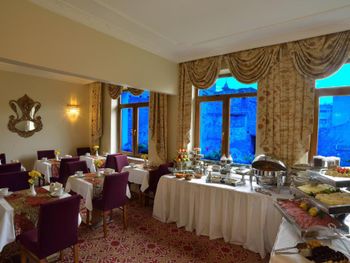 Ресторан не работает, брали исключительно из за террасы, как оказалось она на ремонте ещё месяц, нам дали в подвале номер, очень маленький, неудобный, вид на какой то хлам. Горничные очень громко разговаривают, спать не давали, там же находится у них кухня где они чуть не швыряют посудой. Ужасное место, кто писал эти комментарии вообще.