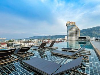 Расположен в самом центре Патонга. До пляжа можно было дойти пешком 3-5 минут, до Bangla road тоже пешком 2-3 минуты. Хороший бассейн на крыше. Все рядом