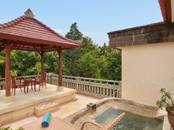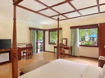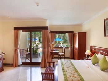 Большой красивый отель с комфортными номерами, с очень большой ванной комнатой, все выполнено в Балийском стиле из дерева. Территория очень красивая, зелёная, и ухоженная! Бассейны чистые и прохладные, что особенно хорошо в эту жару. Проживание в отеле попало на мой ДР, персонал исполнил на завтрак мне песню и подарили небольшой тортик со свечками, очень милые ребята. Организовывают трансфер на свой пляж, но он очень мелкий и с водорослями, поэтому мы ездили на пляж Гегер недалеко, он очень хороший. В целом, все хорошо.
