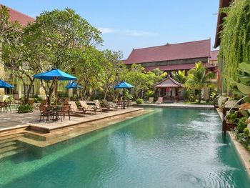 Отель замечательный. Очень красивый бассейн, зеленая территория. Персонал очень приветливый и всегда готов помочь. Завтрак вкусный. От отеля до пляжа и обратно бесплатная развозка занимает минут 5. Пешком до пляжа минут 20. Рядом много кафе и магазинов. Это был первый отель из трех на Бали, и мы очень пожалели, что не забронировали его на более долгий срок. Очень хотелось в него вернуться.