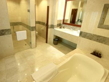 Просторная ванная комната. Персонал хороший. Но в принципе в и других отелях не заметил плохого персонала. Так что можно воспринимать это как норму. В общем и целом не советую.