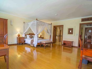 Номер просторный, как и ванная. Хорошо расположен кондей - не дует на кровать, правильно поддерживает температуру. На кровать положили 2 матраса, сделав из них одно спальное место - это печально, но сами матрасы хорошие, спать было комфортно. Отличная уборка, чисто, аккуратно, воду обновляли регулярно + вечером делали дополнительную дезинфекцию от насекомых (и это был единственный отель из 3, где мы побывали на Бали, в котором мы не увидели ни одного насекомого). Персонал вежливый, старается помочь по любым вопросам. Завтраки неплохие, но крайне однообразные. Если бы не свежая яичница, и наше лояльное отношение к ней, то было бы туго.