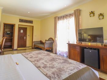 Максимально доброжелательный персонал. Уборка и замена полотенец каждый день. чистый бассейн, классное джакузи. номера просто огромные. wi-fi везде работал. арендовали байки прямо в отеле - проблем не было. 11 долларов в сутки. если буду еще раз на Бали, то снова там остановлюсь. До пляжа меласти на байке минут 7-10.