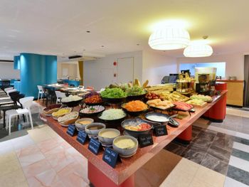Довольно приличный шведский стол на завтрак, чисто, уютно, тихо. Внимательный персонал опять же на шведском столе. Встретят, помогут. В номере кладут бесплатную воду, на каждого по пол-литра. Есть микроволновка, холодильник.