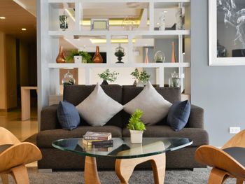 В числе стандартных удобств — гостиная зона с диваном, телевизор с плоским экраном и международными каналами, а также обеденный стол. Мини-кухня укомплектована холодильником, микроволновой печью и электрическим чайником. Предоставляются тапочки. В люксах с 2 спальнями есть отдельная гостиная, а в люксах с 1 спальней гостиная зона отделена от спальни раздвижной стеклянной дверью. В ванной комнате установлен душ.