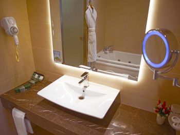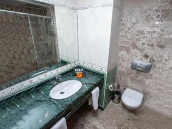 Номера в отелях уровнем ниже чем этот пятизвёздочный, выглядят во много раз лучше, новее и чище. Жуткая ванная комната, с плесенью повсюду. Очень грязно, прокурены стены, невозможно заходить в комнату. Это точно на пять звёзд не тянет. Только портят репутацию известной марке отелей Green Park.