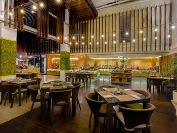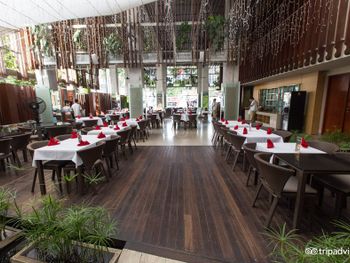 Понравился вкусный завтрак в формате шведского стола. Выбор был огромный. Территория отеля очень красивая, есть несколько бассейнов, в бассейне можно поиграть в мяч и покидать его в корзину. Персонал очень приветливый. В комнатах хорошо убирались. Есть кондиционер. Ближайший пляж Double Six Beach красивый и чистый, есть школы серфинга.