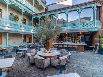Отличный отель в Старом городе. Атмосферный, с грузинским колоритом. Останавливались семьей, брали два номера Deluxe. Понравилось все - начиная от расположения, все рядом, ресторанчики и достопримечательности. Номера тоже прекрасные: удобные кровати, чистота, уютные террасы. Вид во внутренний дворик на кафе, в котором мы завтракали. А вечером, когда поздно приезжали с экскурсий, можно было вкусно поужинать. Легкая музыка, которая совершенно не мешала даже с открытой дверью на террасу. Отель однозначно рекомендую, номера Deluxe, c голубыми террасами, с видом во внутренний дворик.