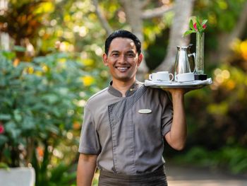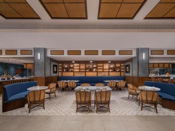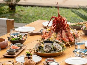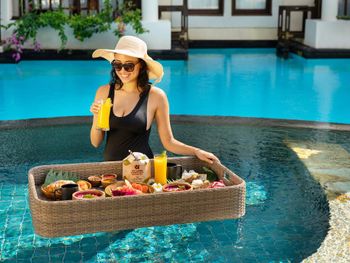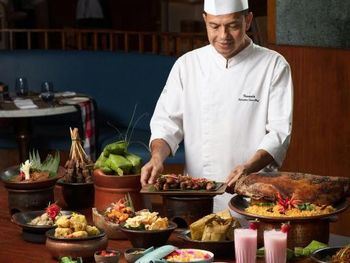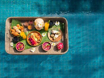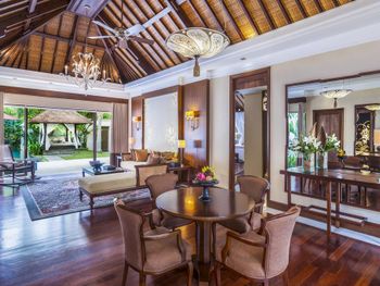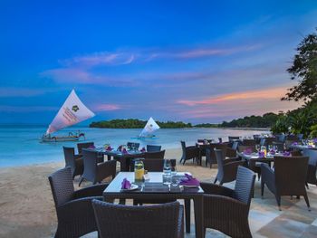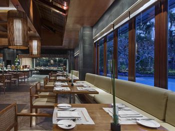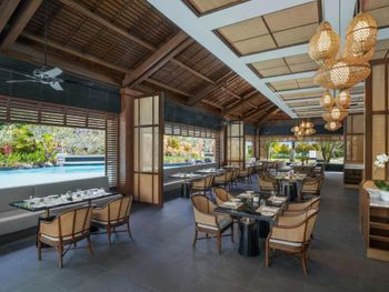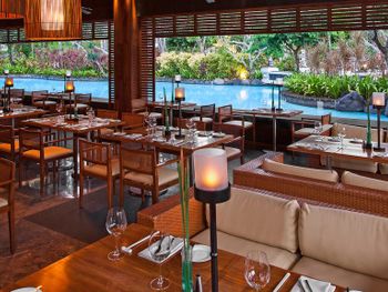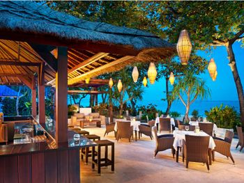 В ресторане Banyubiru в течение всего дня подают блюда западной и паназиатской кухни. В ресторане Arwana рядом с пляжем гостям предлагаются блюда из свежих морепродуктов. Фирменные коктейли и легкие закуски можно заказать в баре Kul Kul у бассейна, в лаундж-баре De Bale и баре Sapphire Lagoon.