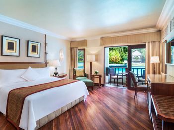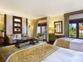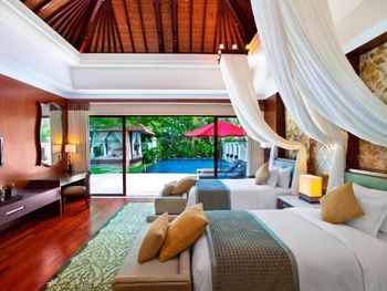 Курортный спа-отель The Laguna, A Luxury Collection, Nusa Dua, Bali с потрясающим видом на Индийский океан и 7 большими бассейнами в форме лагуны окружен белыми песчаными пляжами. Отель расположен среди ландшафтных тропических садов. К услугам гостей просторные номера с круглосуточными услугами дворецкого по вызову.