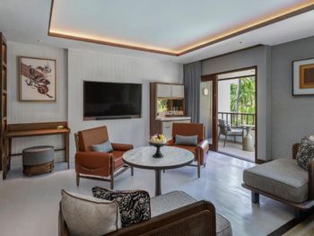 Сама набережная Нуса Дуа приятная . Длинная дорожка вдоль океана , и она ухоженная и красивая . Наш номер был двухкомнатный с ощущением дизайнерской мебели . Быстро реагировал рум сервис. Очень высокого качества сервис .