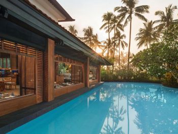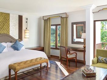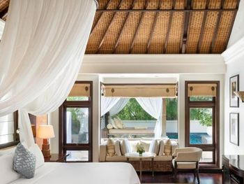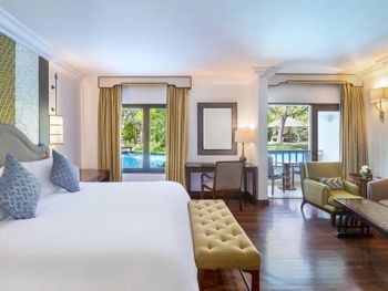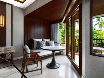 Соотношение цена - качество. В номере ступенька, если ночью проснуться в туалет, можно не слабо травмироваться, отель не многоэтажный и в номере постоянная влага. Мебель старая очень мало хранения, сам номер маленький даже для пары, нет утюга элементарно чтобы чуть освежить вещи..в ресторане на пляже персонал оооочень не торопливый, при этом цена Московских ресторанов. В соотношении с соседним РитцКарлотон…не стоит этих денег, номер в 2 разв меньше по кВ., территория меньше в разы.
