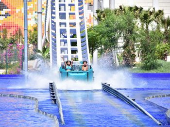 Мы хотели кататься на Тайфун коастер, высокой синей горке, но она не работала. Все остальное нас впечатлило.