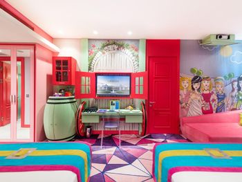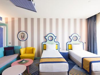 Не предупреждают, что какие то услуги платные, например минибар, напитки во время трапезы кроме чая и воды, но в тоже время предлагают как ни в чем не бывало, а потом обслуживающий персонал ресторана подходит при каждой трапезе и требует оплатить лично ему и только наличкой. Хотя мы сказали хорошо мы оплатим на выезде на ресепшене. В номерах выходящих над рестораном во время ужина пропахивают грилем, дымом, едой. Еще кто-то периодически курил ( хотя запрещено) и запах тоже был в комнате. Аквапарк это вообще треш, очереди везде по 15-30 минут, мы прокатились ровно на 3х горках, некоторые вообще не работают, народу тьма. Еда на территории стоит очень дорого. Ожидания от этого места были конечно другие, тем более судя по отзывам, да реально "как в сказку попали", только в плохую. Шумка кстати никакая. И плейстейшены в номерах бесполезны, игр нет, обновления нет, инета на них нет, нам поменяли 3 штуки воевали с ней и так не поиграли, дали розовую комнату, хотя у нас сын.