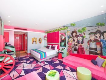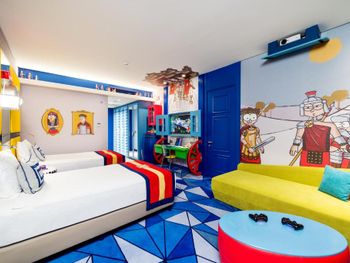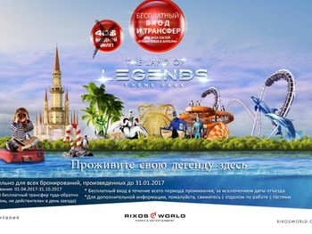 Для проезда к отелю приготовьте данные о бронировании, чтобы показать охраннику на шлагбауме. Все начинается с удобного паркинга, ассистент поможет выгрузить багаж и отгонит машину на парковку. В отеле все для детей и немножко для взрослых. Нигде на территории отеля нет алкоголя, кроме одного паба. Весь минус первый этаж - все для развлечения детей: мини клуб, игровые автоматы, плей-стейшены, лаунж, бар с безалко-коктейлями и тп. Удобное приложение с расписанием ежедневных активитис в отеле, шоу и др. мероприятий в парке, в зоне шопинга, везде в стране легенд. Никогда не пропустишь что-то интересное. Удобное общение в вацап в случае необходимости решить любые проблемы. И главное - безлимит посещения парка включен в стоимость. Зимой не работает аква-зона. Но прекрасное шоу дельфинов работает. Хороший Спа.