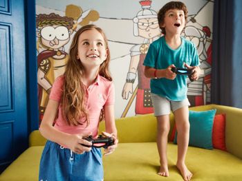 * Номера как бы рассчитаны на детей и для этого в каждом находится Playstation, но выбор предлагаемых дисков с играми на ресепшене состоит из 3-4 заурядных вариантов. Дети даже отказались это брать..