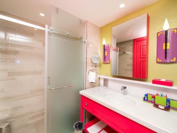 Душевая кабина со стеклянной перегородкой (небезопасно с маленькими детьми). Отсутствие номеров с ванной в номерном фонде.