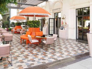 По приезду в отель на стойке регистрации нам сообщили о том что у нас будет номер с террасой и видом на главную площадь, где мы могли не выходя из номера наблюдать все шоу сверху( что очень нам показалась удобным, не стоять в толпе людей, где не особо видно все)