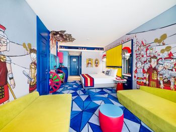 Бронируя номер я написала свою просьбу по тематике номера, так как у нас мальчик номер нам организовали в синем цвете и рыцарской тематике.
