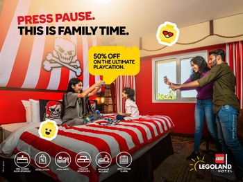 Были с ребенком 8 лет. Бронировали на 2 дня. Первый день приехали в 12:00, заезд с 15:00, номер был еще не готов. Получили билеты в парки (входят в бронирование) и сразу пошли в Леголэнд. Ребенок был в восторге. Отель хорошо продуман для отдыха с детьми. Детский подогреваемый бассейн, ресторан с кучей разнооо вида макарон и мороженым. И для взрослых - очень большой выбор вкусных разнообразных салатов. Замечательная баранина. Номер выбрали Нинзяго. Отдельное помещение для взрослых, отдельное для детей (двухъярусная кровать). Косметика, зубные наборы, тапки - есть и взрослые и детские. В номере / секретный сейф, где спрятан небольшой набор Лего. Чтобы его открыть / нужно разгадать шифр. Это очень понравилось мальчишке. Замечательное место для отдыха с детьми.
