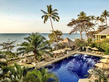 Хорошее расположение, прямо на берегу. Заказали тур "на дельфинов" в отеле, что очень удобно. Хороший закатный ресторан на пляже, но цены чуть выше среднего. Большой чистый номер с видом на рисовые поля и горы. На выходные самое то. Есть спа, сувенирный магазин, несколько бассейнов на территории.