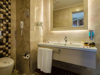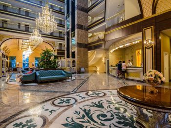 Первое впечатление при заезде это холл гостиницы. В этом 5 звездочном отеле видимо жесткая экономия электричества, в холле было очень жарко, кондиционеры не включались. Абсолютно непрофессиональный персонал на ресепшн. Слова «здравствуйте, добро пожаловать, спасибо, извините и т.д.» просто отсутствуют в лексиконе. С трудом получил второй ключ для номера, чтобы была возможность оставлять кондиционер включённым в номере. Очень грязно на этажах, перед лифтами, в лифтах и в самих номерах. Ощущение антисанитарии в ресторане. В общем полное разочарование в 5 звёздах...