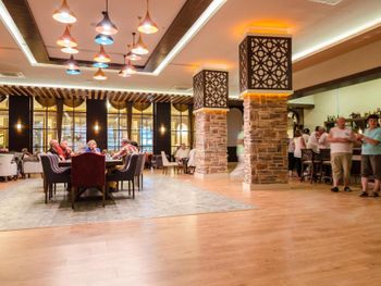 главный минус- это ресторан. Основной ресторан в помещении очень похож на обычную столовую, неуютно, шумно, очень много людей- некомфортно. Более приятное место для приема пищи- это терасса, но на ней 90% людей курят во время приема пищи! Это доставляет большой дискомфорт для некурящих людей! Администрации стоит принять меры по борьбе с курением во время еды.