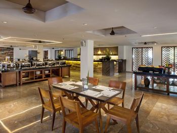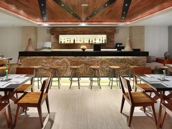 Mozzarella Restaurant & Bar at The Magani Hotel and Spa serves a variety of Indonesian and Western cuisine.