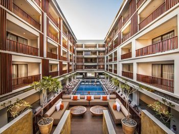 The Magani Hotel and Spa is located in between downtown Kuta and Legian area, a 3-minute walk from Kuta Beach. It offers a spa and outdoor swimming pool. Free Wi-Fi is provided in all areas and free on-site parking is available.