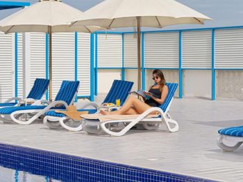 Отель буквально расположен посреди пустыни: рядом ни одного магазина, кафе или метро. Такси можно ждать до часа. В номерах нет адаптеров на европейские розетки. Завтрак скудный. Бассейн маленький.