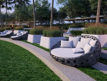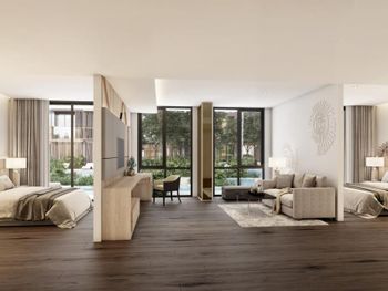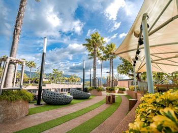 На крыше оборудована большая зона для отдыха с бассейном и купелью. На первом этаже также есть бассейн, окружённый пальмами — отличное место, чтобы спрятаться от солнца и расслабиться.