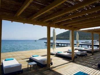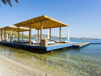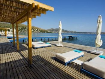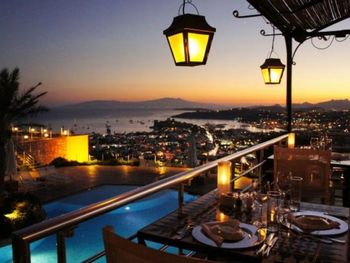 Этот дизайн-отель разместился на вершине холма. Из открытого бассейна свободной формы открывается панорамный вид на залив Бодрум и остров Кос.